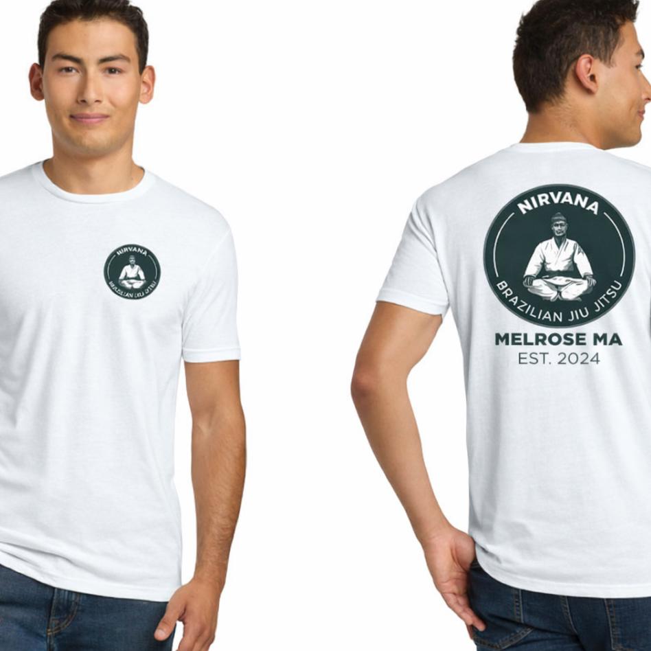 Represent Nirvana Brazilian Jiu Jitsu wherever you go. This comfortable, athletic-fit tee features our academy emblem with the meditating grappler and “Melrose MA – Est. 2024” marking the beginning of our journey. Designed for everyday wear, it reflects the philosophy behind our training: